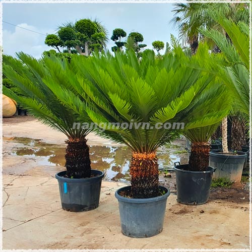 - Hình thái hoa: Là loài có hoa đơn tính khác gốc mọc trên ngọn than. Hoa đực hẹp dài mang những nhị hình mác có bao phấn dọc theo mép, nhìn giống trái ngô lớn. Hoa cái gồm những lá noãn dài tới 20cm, có lông màu trắng hơi vàng nhìn giống hình bán cầu